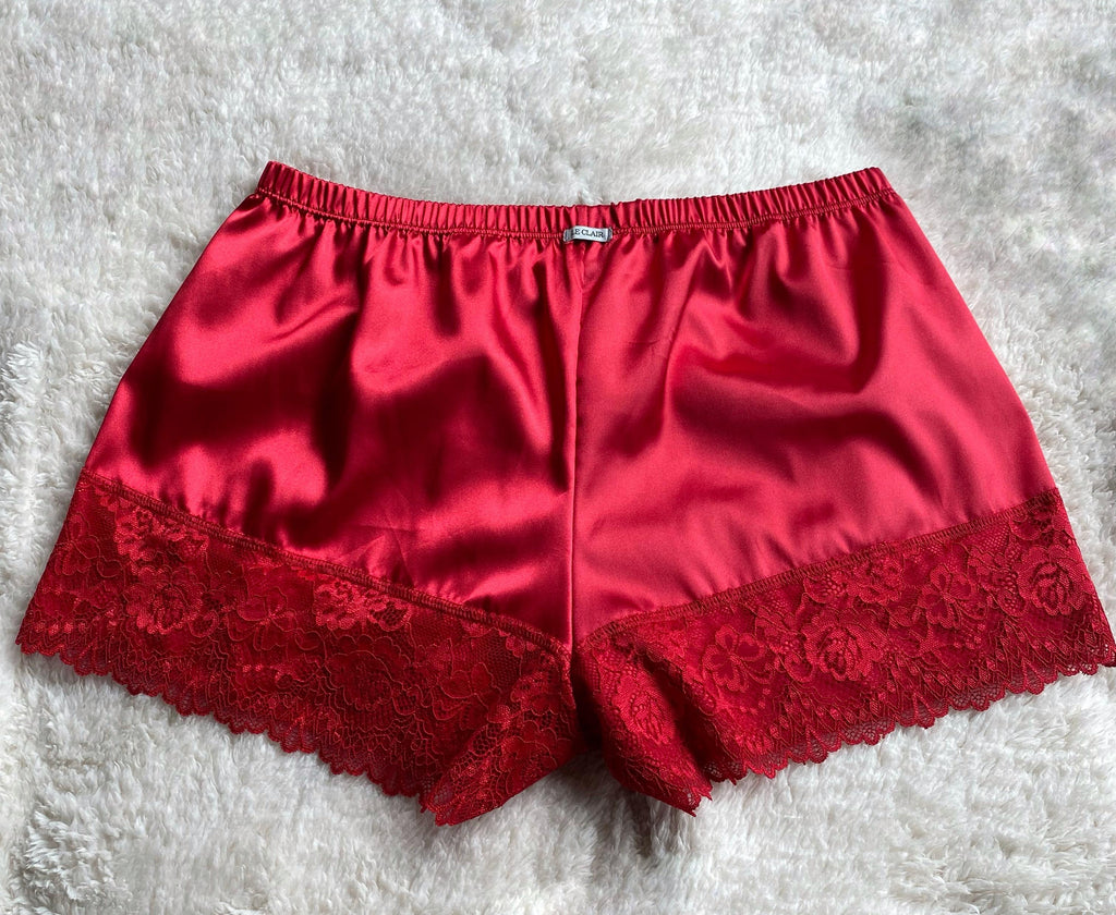Este short vermelho em cetim combina elegância e conforto, com delicados detalhes em renda e um laço que realçam sua feminilidade. Seu caimento perfeito valoriza o corpo, proporcionando uma sensação suave e agradável para o dia todo. Ideal para quem busca estilo e bem-estar em uma peça versátil.